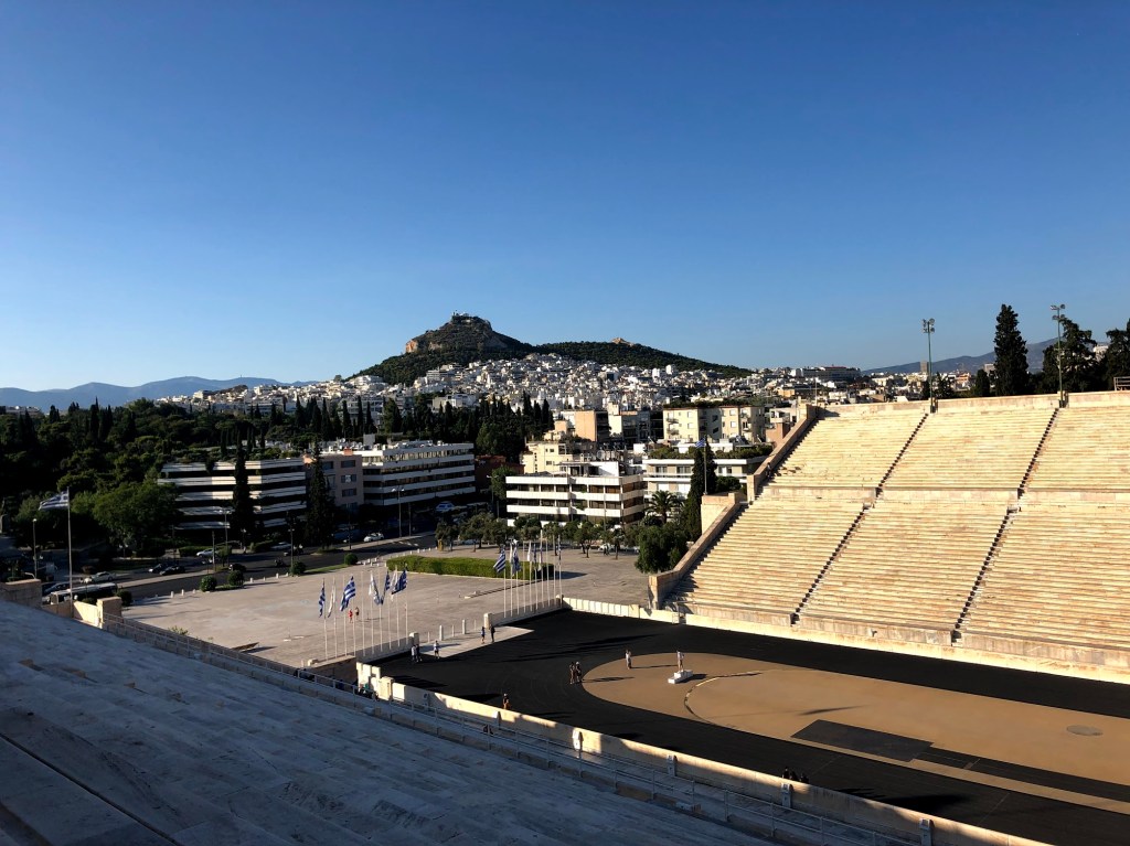 We then went to the Panathenaic Stadium, an all-marble stadium which hosted the first modern Olympic games in 1896. (Yes, I ran a lap of the track. 🙂)