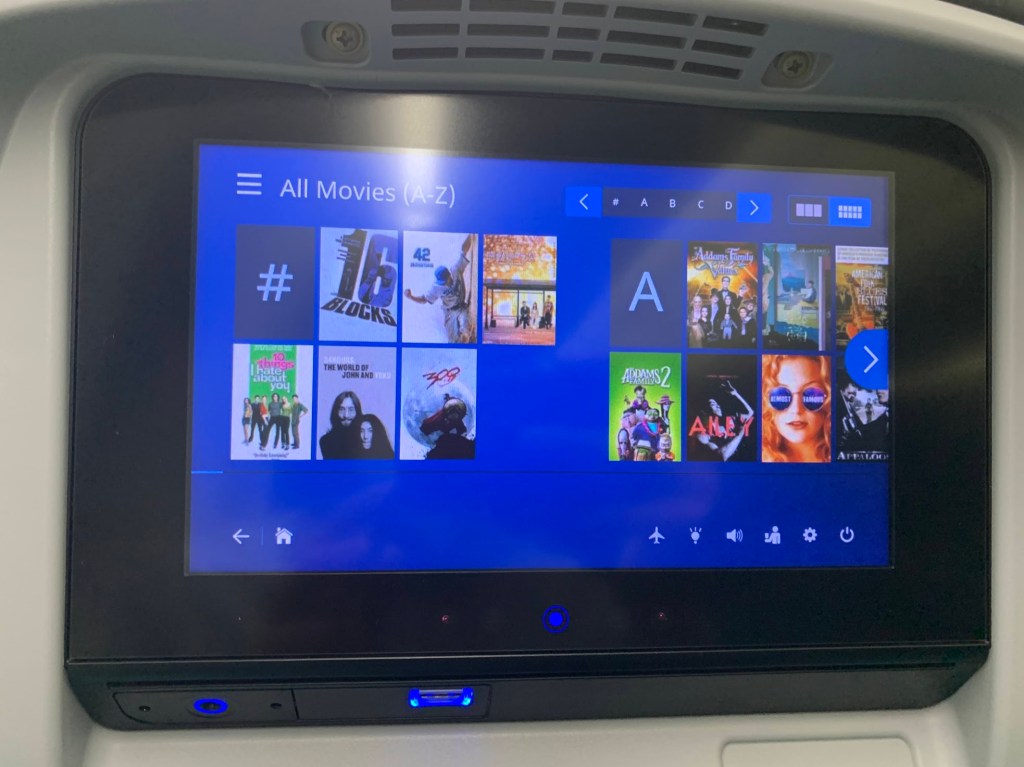 As we spent a couple hours on the ground with limited announcements, I decided to check out the entertainment selection. The interface was updated from last time I flew, and it was amazing. After choosing a few settings like language and accessibility, you could see the service schedule from the flight, and then could choose from either seeing destination information, or the endless movie selection.