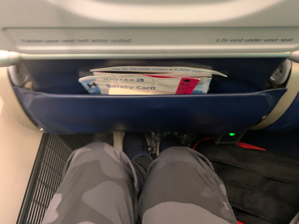 Boarding started on time around 8:30 PM. After people needing assistance and those with elite status and sitting in premium classes, United seems to board its planes back to front, which worked out pretty nicely when it came to aisle congestion. The plane was completely full (with many people being rebooked to this flight from the cancelled Mumbai route; more on that below), meaning the agents were gate checking luggage for free.