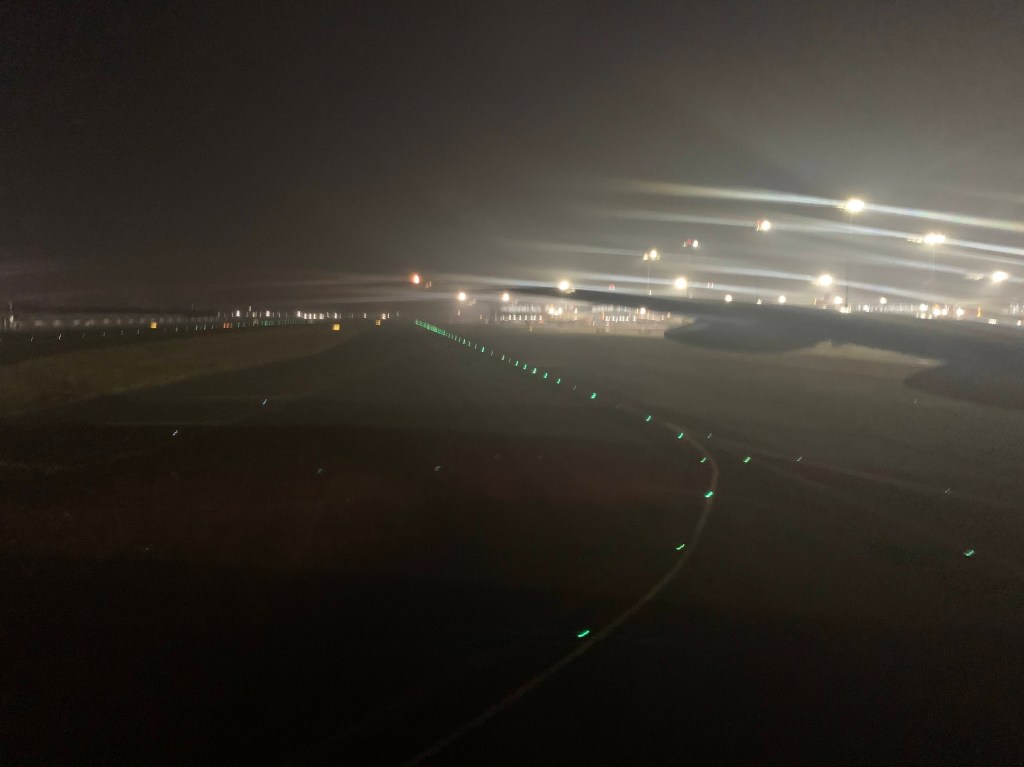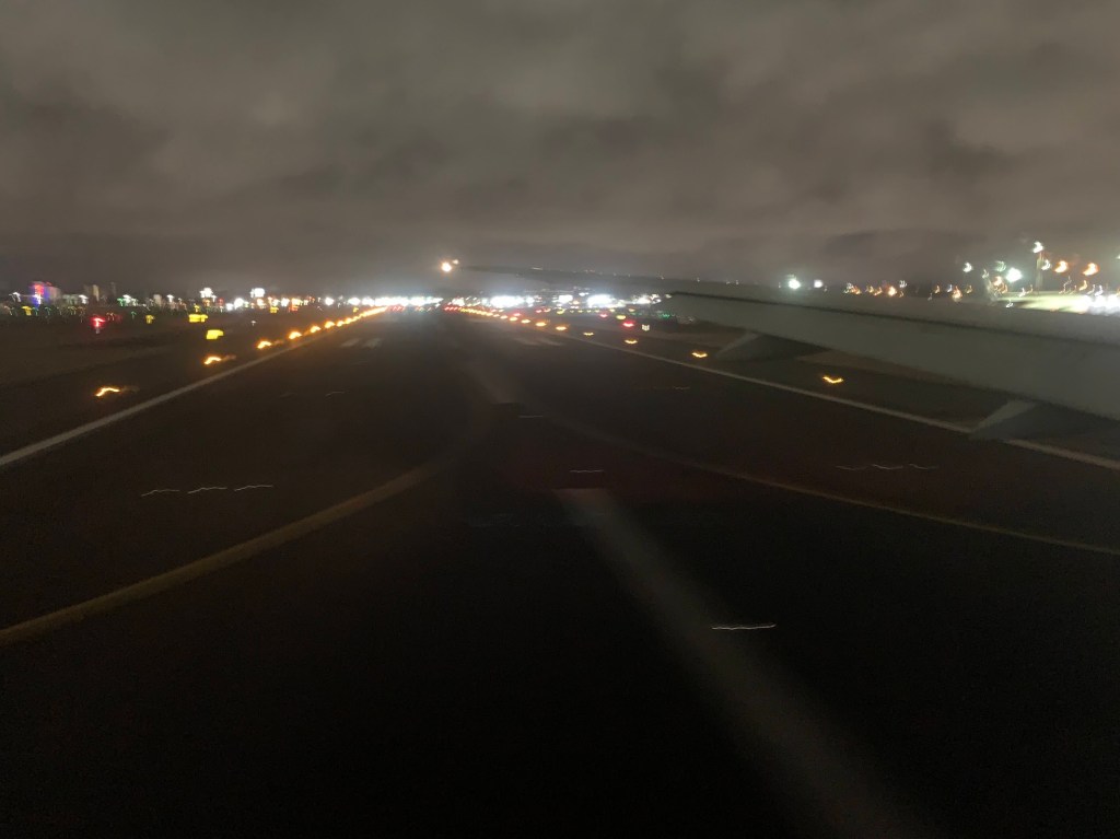 We had a smooth landing on Runway 29 at 11:52 PM (a little over two and a half hours late). The 13 hour 49 minute estimated flight time at the beginning of the flight was spot on!