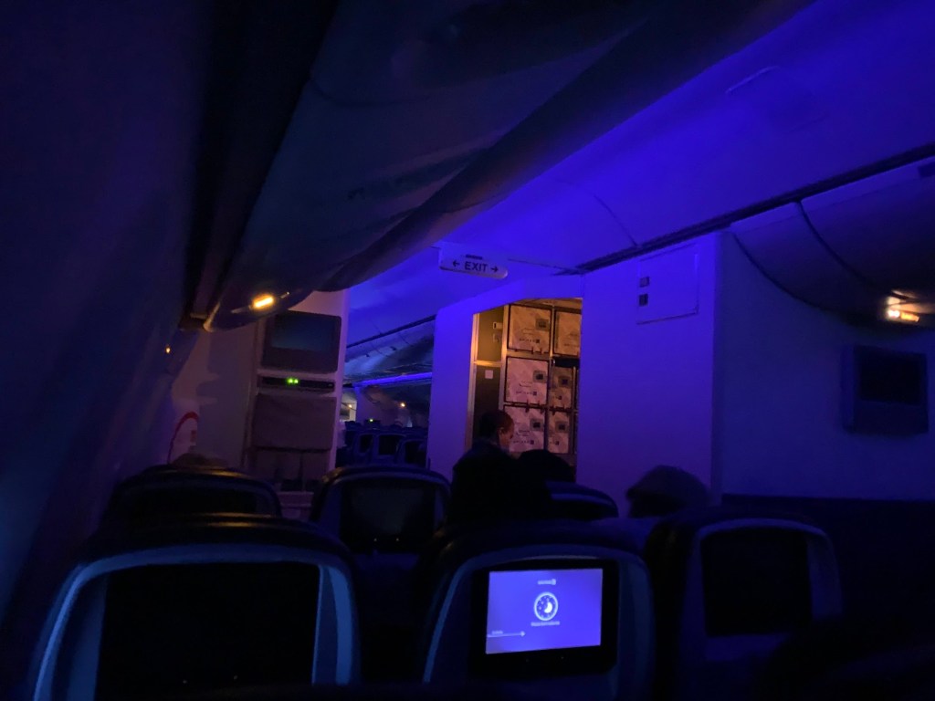 Pre-takeoff cabin view (the mood lighting messed with the camera quality!)