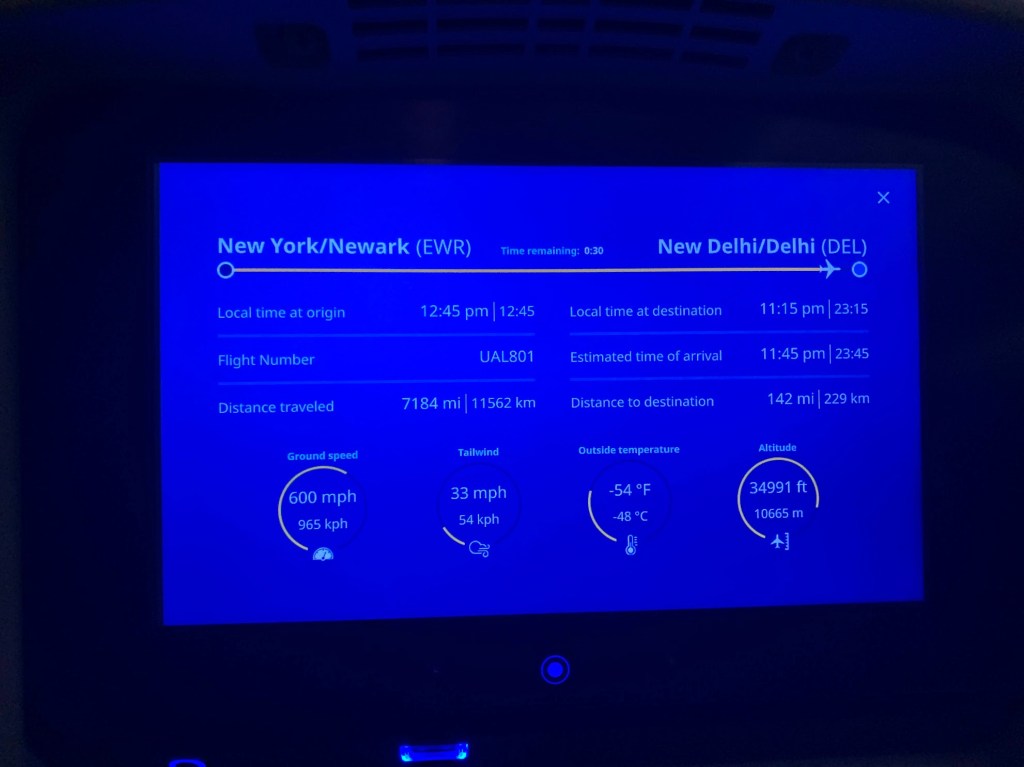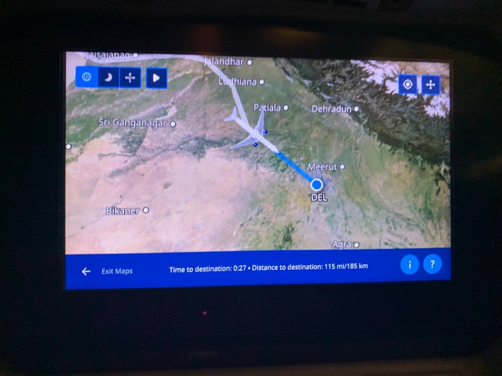 We started or descent around 11:15PM Delhi time, around 30 minutes before our estimated arrival time.